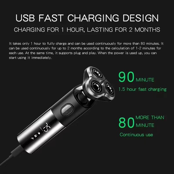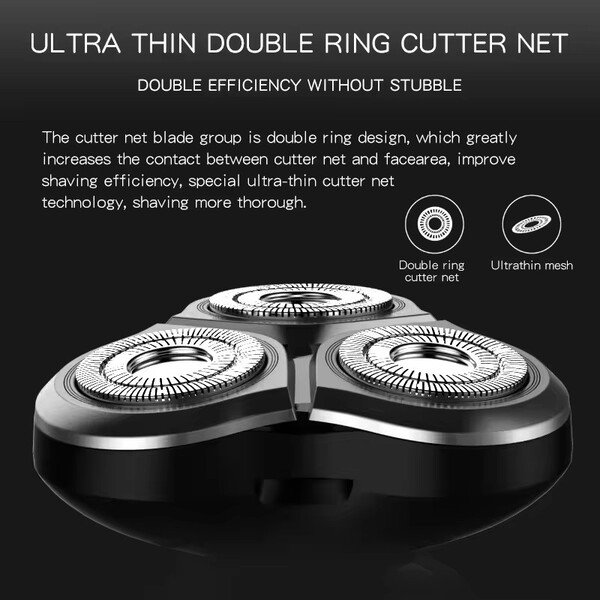 Features: The knife net blade set adopts double-ring design, which greatly increases the contact area between the knife net and the knife surface and improves the shaving efficiency, and the special ultra-thin knife net technology makes the shaving more thorough.Intelligent low battery warning and charging protection, intelligent 3-second travel lock, travelling is convenient and safe.