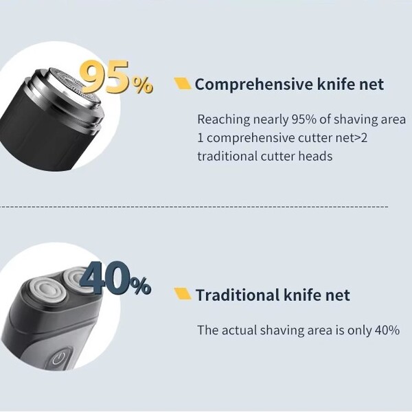 Feature: Low noise load capacity, smooth speed, smooth shaving without staining hands, double ring arc knife mesh high efficiency, more skin-friendly arc knife.
