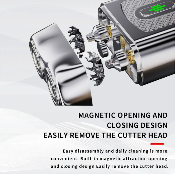 Feature: usb charging, mini design, double head torus cutter net, magnetic suction design, easy removal of cutter head, metal body.