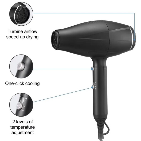 Feature: Multi-speed hair dryer, suitable for blow drying, curling and straightening a variety of hairstyles, the use of ceramic element heating, constant temperature, safe and efficient, 2 speeds and 3 heating settings, ergonomic streamlined body design, easy to hold and operate, 360-degree swivel power cord can be swiveled at any angle, no need to worry about tangling.